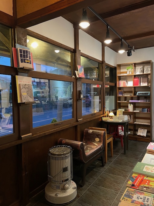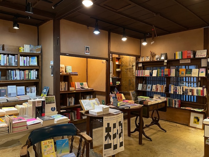 마리서사 대표님이 아무 연고도 없는 군산에서 서점을 열겠다고 결심한 것도 책방이 자리한 건물 때문입니다. “군산에서 이 집을 발견했는데, 이곳에서라면 제가 원하는 서점을 할 수 있겠다는 생각이 들었어요. 여기서 서점을 한다면 ‘마리서사’라고 이름을 지어야겠다는 영감도 떠올랐고요.”***** 길게 설명할 필요 없이 책방 앞에 딱 서는 순간 대표님 마음을 곧바로 이해할 수 있습니다. 간혹 형식이 내용을 압도하는 경우가 있는데 마리서사가 딱 그렇습니다. 저기가 세탁소나 방앗간이라고 해도 무작정 문을 열고 들어가고 싶을 만큼 멋진 풍경을 보여줍니다. 내부 공간의 멋스러움은 더 말할 것도 없고요. “지어진 지 100년이 넘은 적산가옥이에요. (…) 100년이 지났지만 서점 안쪽은 거의 다 처음 지어진 그대로 남아 있어요. (…) 적산가옥은 군산에서는 굉장히 흔하지만 처음 오시는 분들은 굉장히 낯설어하세요. 특히 적산가옥을 매장으로 바꿀 경우 내부도 일본 분위기로 꾸미곤 하는데, 저는 그러지 않았어요. 1920~30년대 지식인의 서재 같은 분위기로 책장을 짜고 가구를 선택했어요.”***** 과장을 조금 보태자면, 책장에서 기백이 느껴질 정도로 기품 있는 공간이었습니다. 아, 공간을 가득 채운 책들의 면면도 당연히 훌륭하고요.