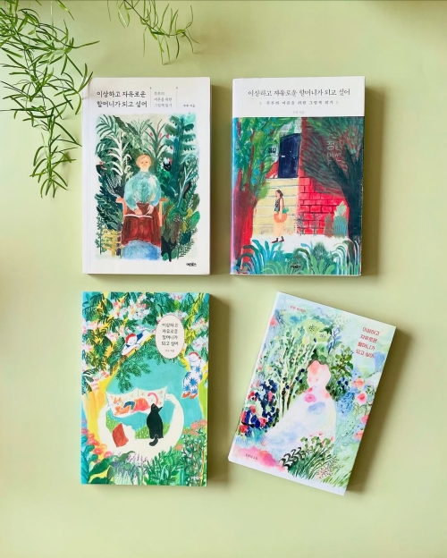 <이상하고 자유로운 할머니가 되고 싶어>를 처음 작업하던 시절은 제게 여러모로 특별한 때였어요. 오래 머물던 작업실을 떠나 새 공간으로 옮겼고, 삶에서도 크고 작은 변화들이 이어지던 시기였거든요. 그래서인지 이 책에는 제 삶의 사건들이 자연스럽게 스며들어 나이 들어가는 일에 대한 제 시선을 조금은 다정하게 바꿔준 것 같아요.
